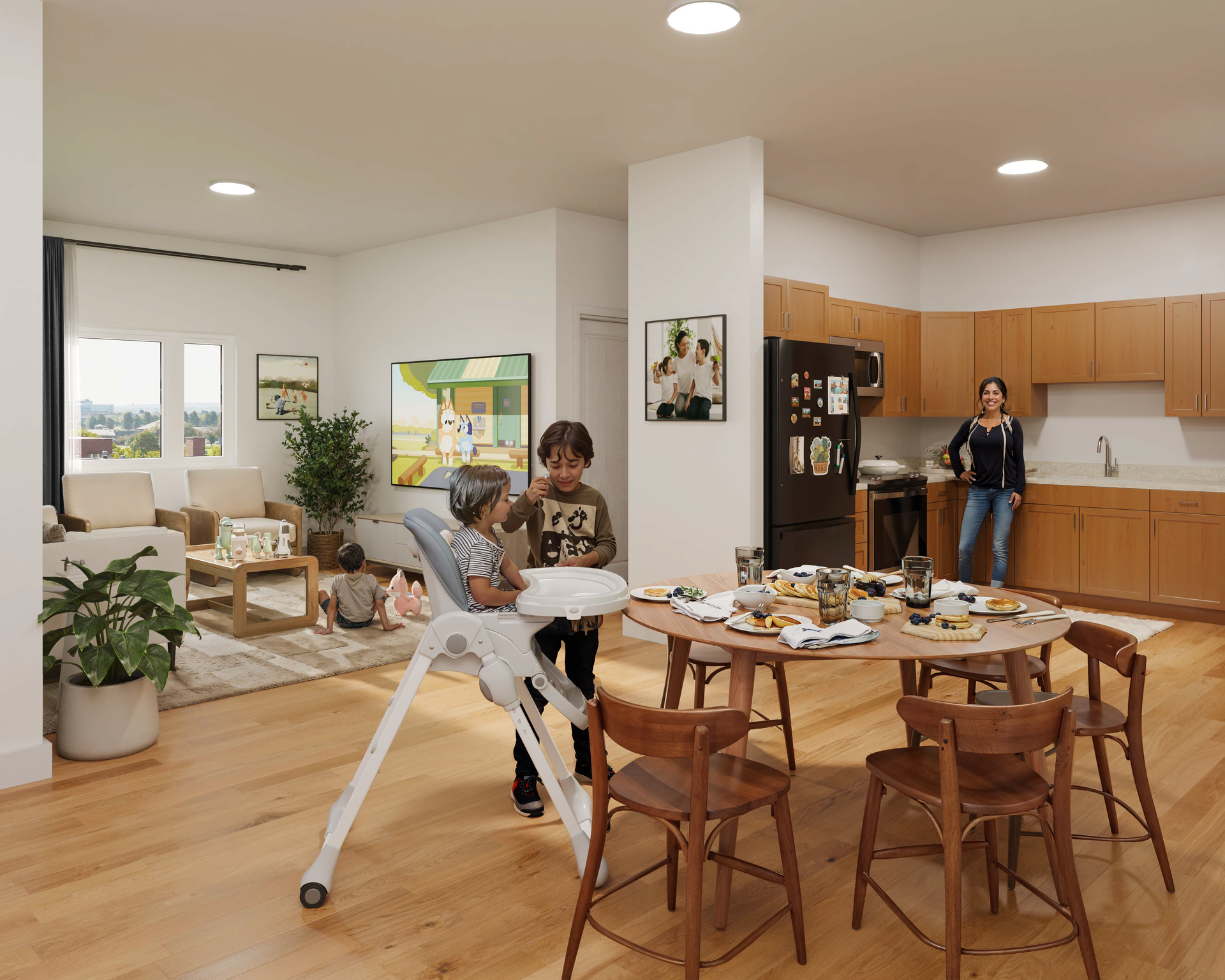 - 2-and 3-bedroom affordable apartment units designed specifically for families who have previously experienced homelessness